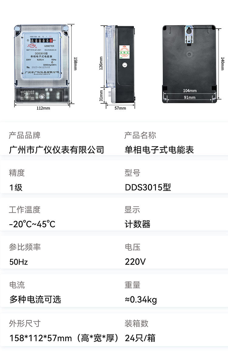 DDS3015型电子式单相电能表,系采用质量优良的大规模集成电路以及SMT技术。步进电机驱动机械机构的计度器和液晶显示计度器,停电不丢失记录的数据,是国内结构的电能表产品之一。本产品用来计量电压220V,参比频率50HZ的交流单相有功电能,性能符合GB/T17215.321-2008标准。